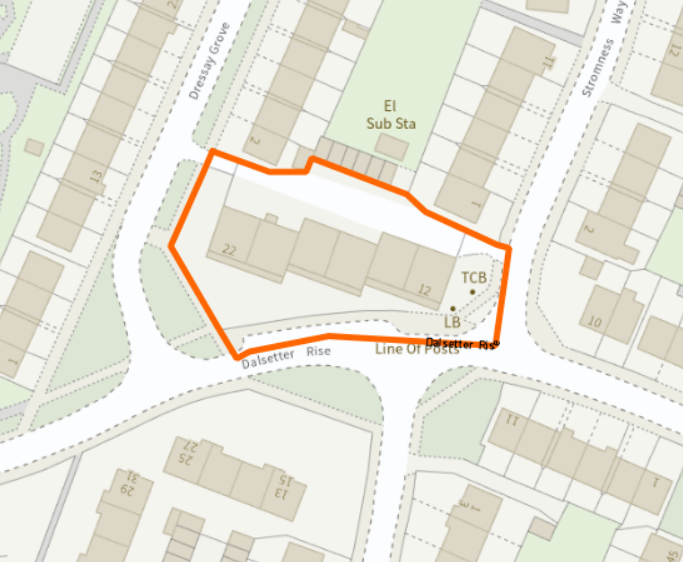The Dalsetter Rise Neighbourhood Centre covers the parade of shops on the north side of Dalsetter Rise between Dressay Grove and Stromness Way.